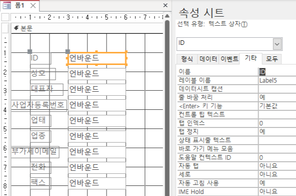 현재 상태에서 폼 보기를 누르면