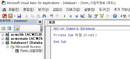 아래와 같은 VBA창이 뜨는데 우선은 신경쓰지 마시고, 나머지 2개의 버튼도 같이 이벤트를 적용해줍니다.
