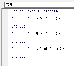 위의 그림과 같이 VBA창에 3개의 코드가 심어졌으면 완료하신겁니다.
