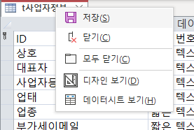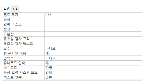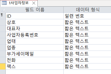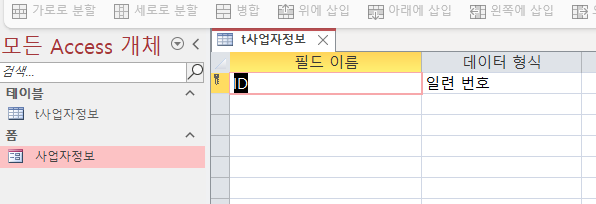 이제 필드이름과 데이터 형식을 채워줍니다.