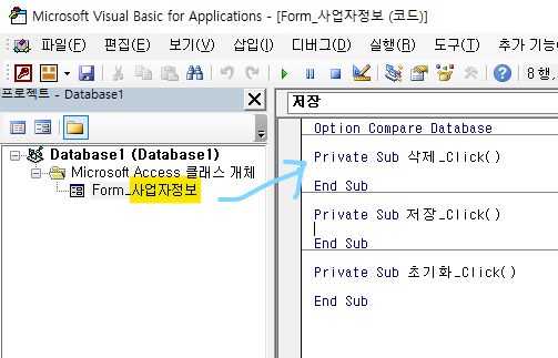 간혹 미쳐 확인 못하고 다른 폼에 코딩을 하는 경우가 있습니다.
