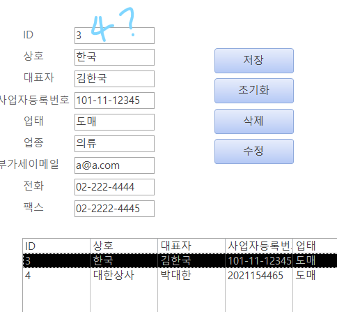 위와 같이 ID 3,4 열이 두개 있는데 저장을 누르면 아래와 같이 빈 데이터 열이 발생합니다. 반복해서 두번 눌렀습니다.