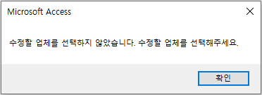 MsgBox "수정할 업체를 선택하지 않았습니다. 수정할 업체를 선택해주세요."