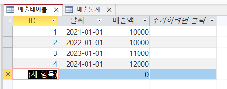 strSQL = "SELECT Format([날짜],'yyyy') AS 날짜a FROM 매출테이블 GROUP BY Format([날짜],'yyyy')"