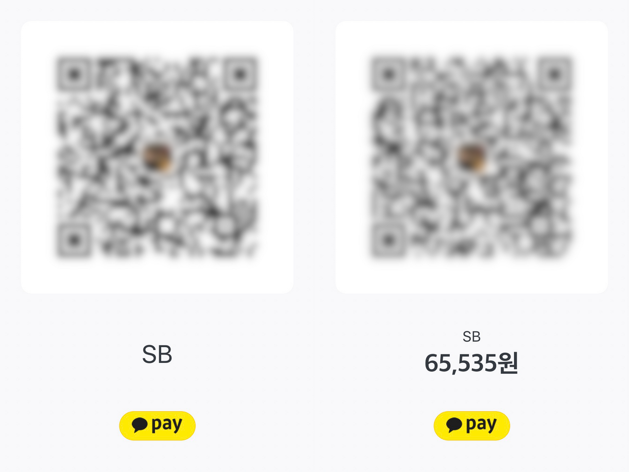 카카오페이 UI에서 위의 금액을 일일히 넣어서 QR 코드를 하나씩 생성했다. 그다지 아름답지 못한 성격의 지루한 작업이었지만, 별다른 방법이 없었다.