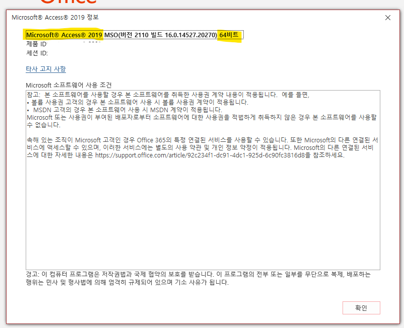 간단한 오피스 버전 확인 방법입니다.