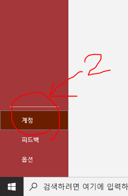 2) 파일을 누른후 좌측하단에 계정을 클릭하세요.