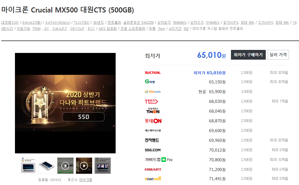 [다나와] 마이크론 Crucial MX500 대원CTS (500GB)