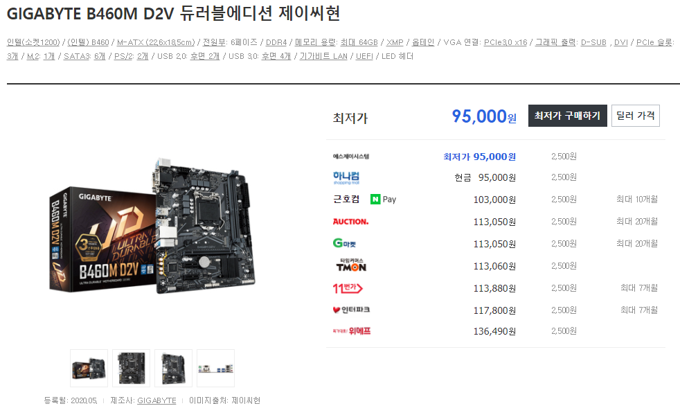 [다나와] GIGABYTE B460M D2V 듀러블에디션 제이씨현