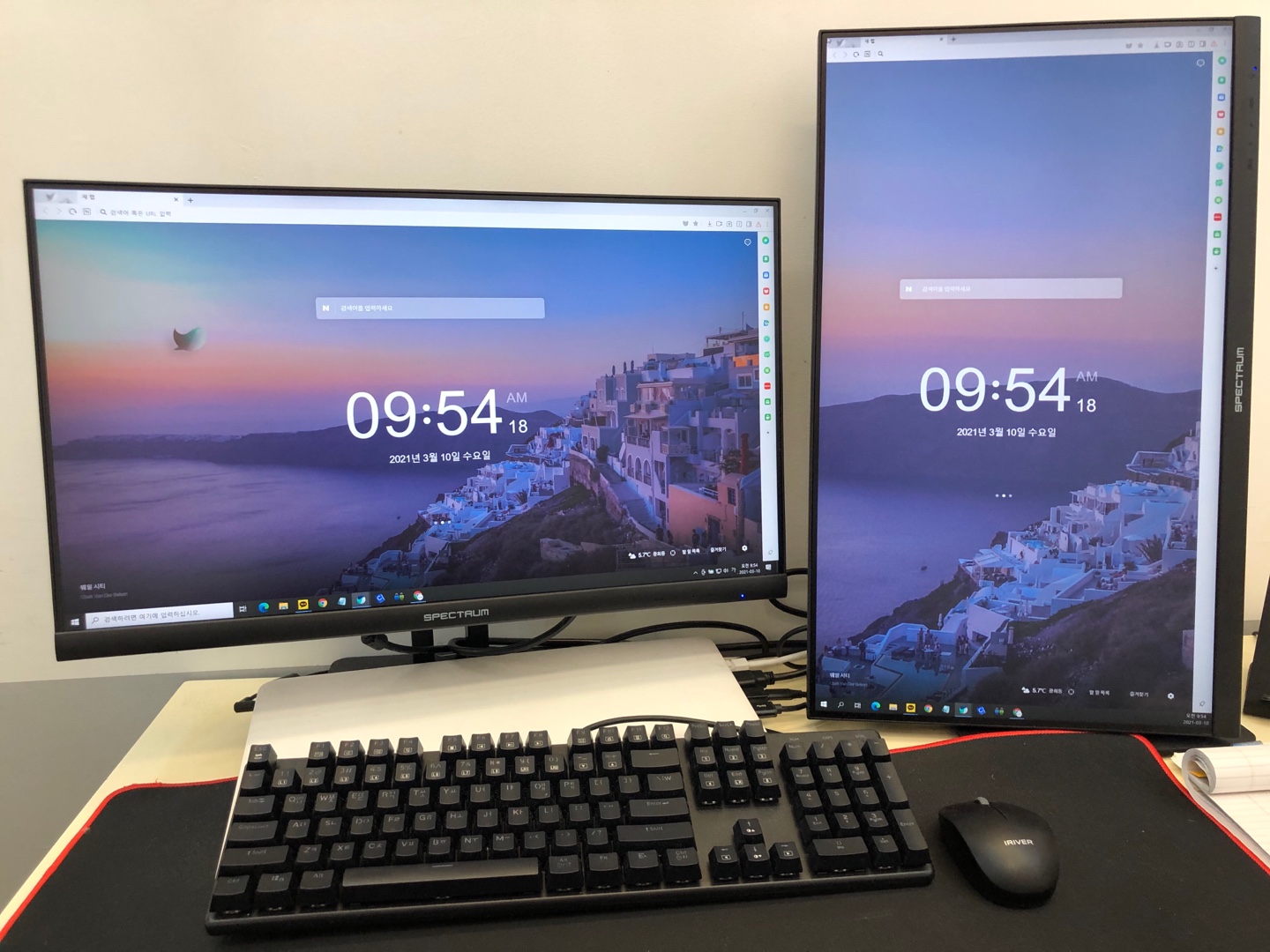 원래는 트리플로 구성하려고 구매했는데 일단은 해상도를 맞추려고 듀얼로 사용중입니다.