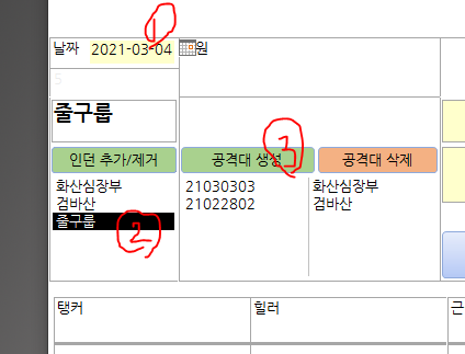 공격대 예정일을 (1) 날짜창에서 선택하시고