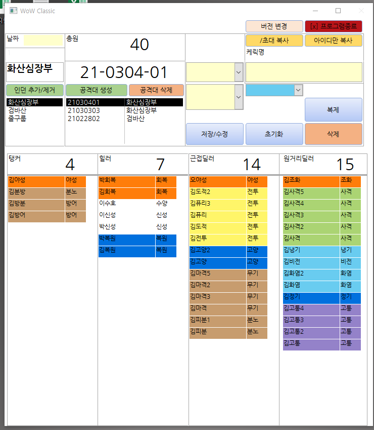 업데이트를 한번 해볼까 하는 예전에 만들었던 파일입니다. www.inven.co.kr/board/wow/5531/1273 월드 오브 워크래프트 인벤 : (05.29)공격대관리도구같은 겁니다. updated 05.29. (본섭+클래식) - 와우 05.29.안..