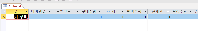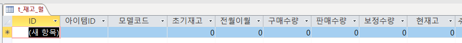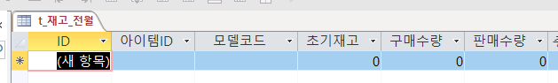 [t_재고_전월] 을 생성했습니다. 스크린샷은 제가 테스트한 그림이고, 아래와 같이 [필드]를 생성하시면 됩니다.