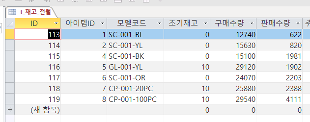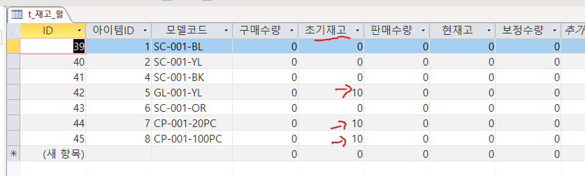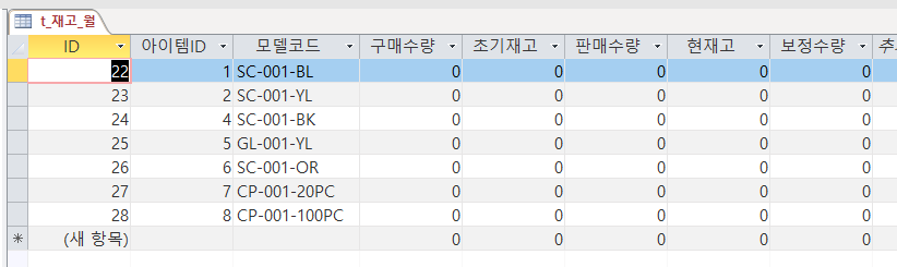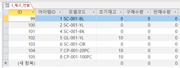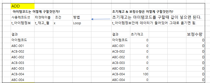 4) 테이블에 아이템코드와 아이템ID를 넣기 + 초기재고