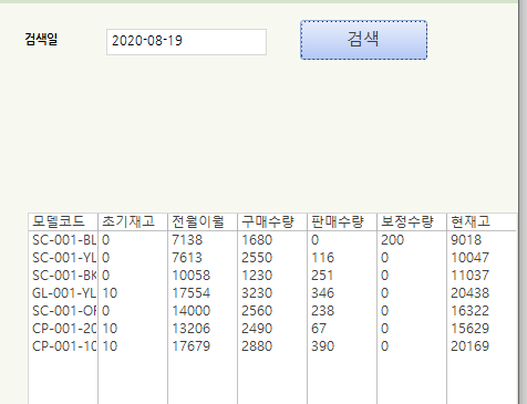 드디어 검색일에 따른 현재고를 구하는 리스트를 완성했습니다.