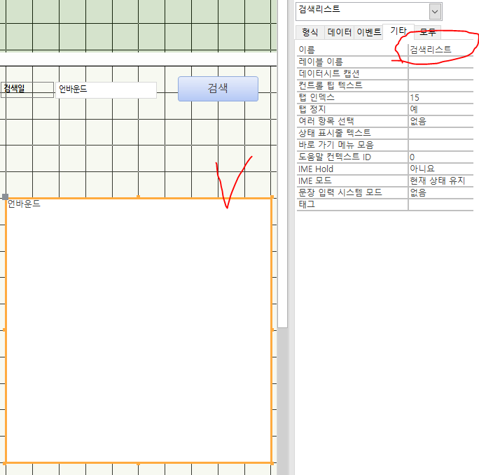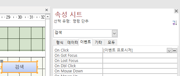 폼에 "검색일" 이라는 텍스트 박스를 하나 만들어주고, "검색"이라는 버튼을 하나 만들어줍니다.