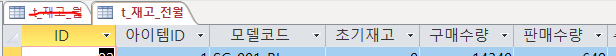 2) [t_재고_월] 과 [t_재고_전월]에 아이템순서대로 넣기