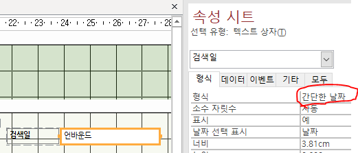 위의 검색일은 me.검색일 이며 텍스트박스 오브젝트 입니다.