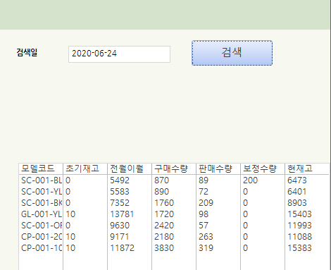 월별 재고 확인하는 폼 만들기
