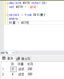 매개변수 @STR 조건이 있는 select문도 정상적으로 작동합니다.