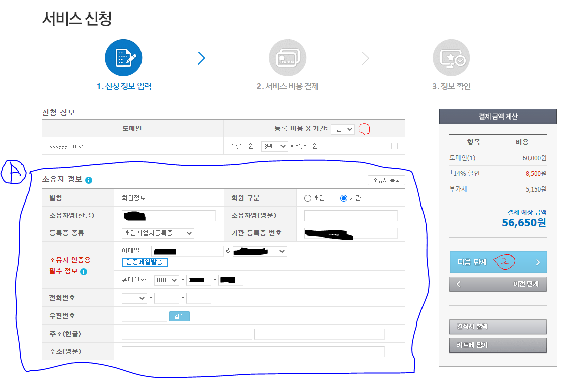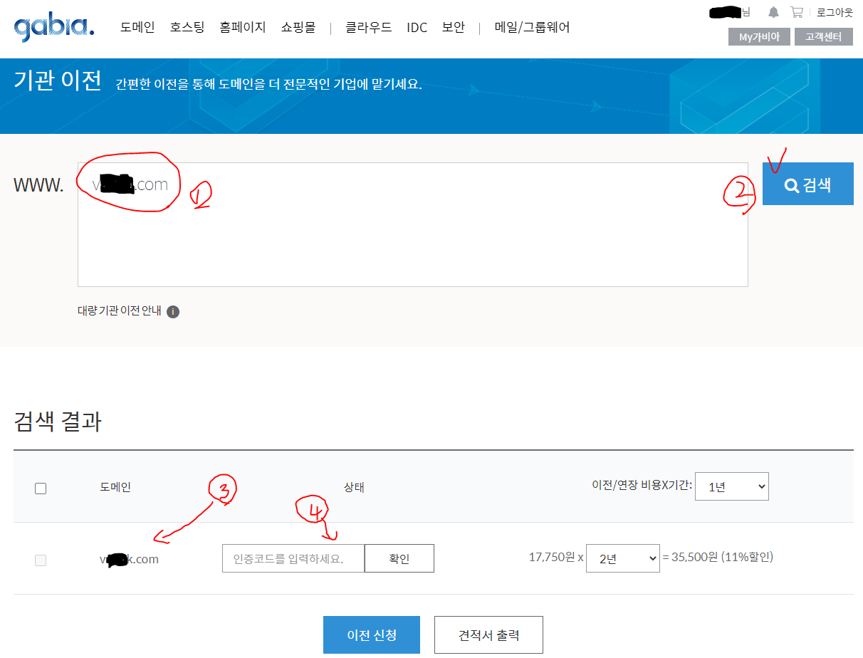 1) 도메인 구입 또는 도메인 이전