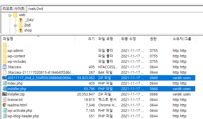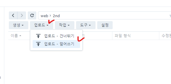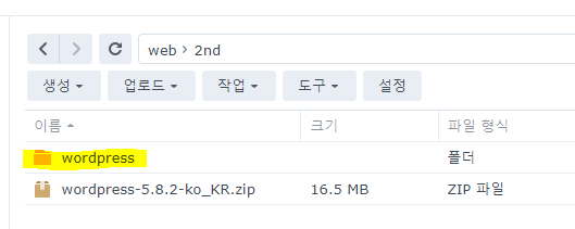 FTP를 이용해서 이 두개의 파일을 시놀로지상 2nd폴더에 넣습니다.