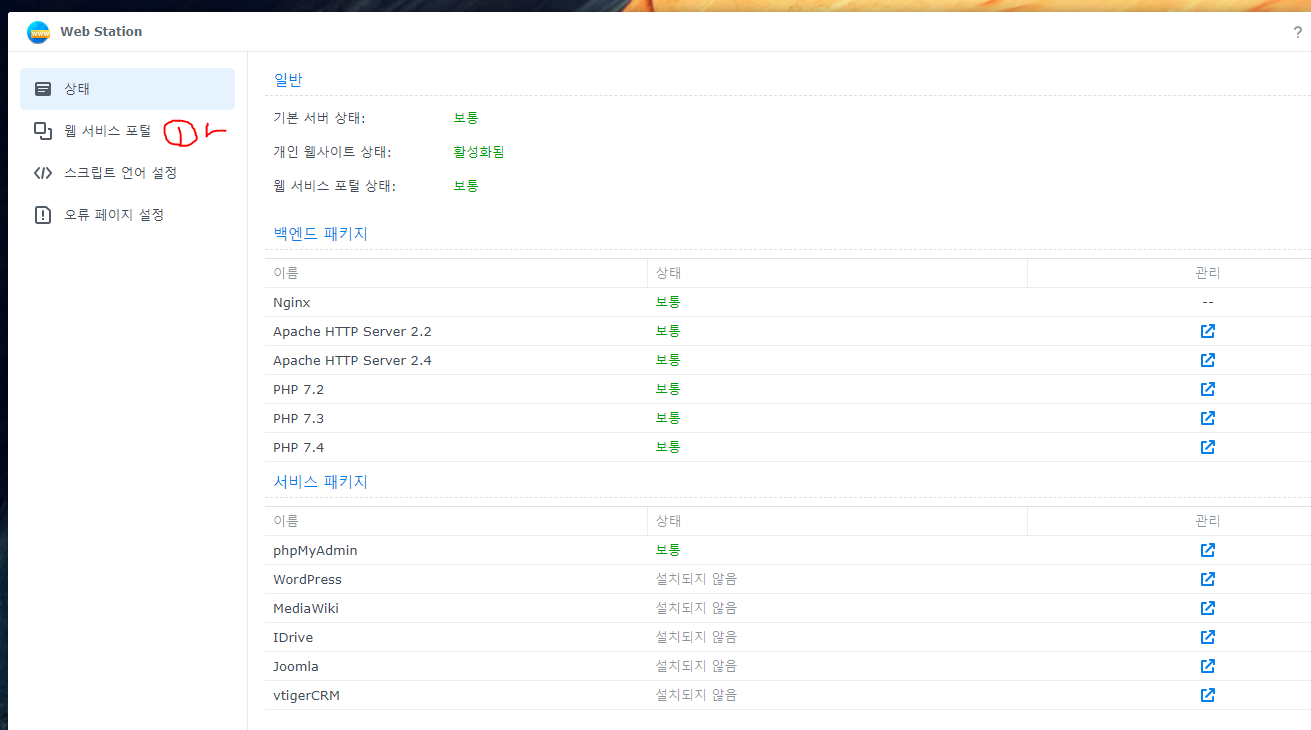 6) (시놀로지)웹스테이션 설정
