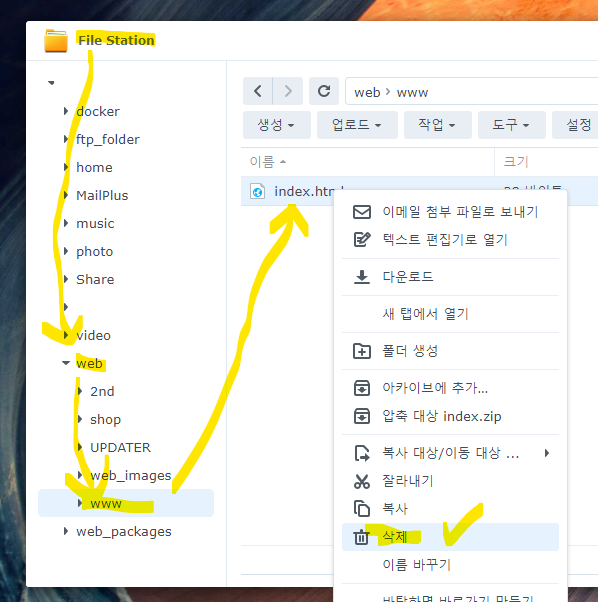 이 방법은 시놀로지뿐 아니라 임대하는 호스팅서버에서도 사용하는 방법입니다.