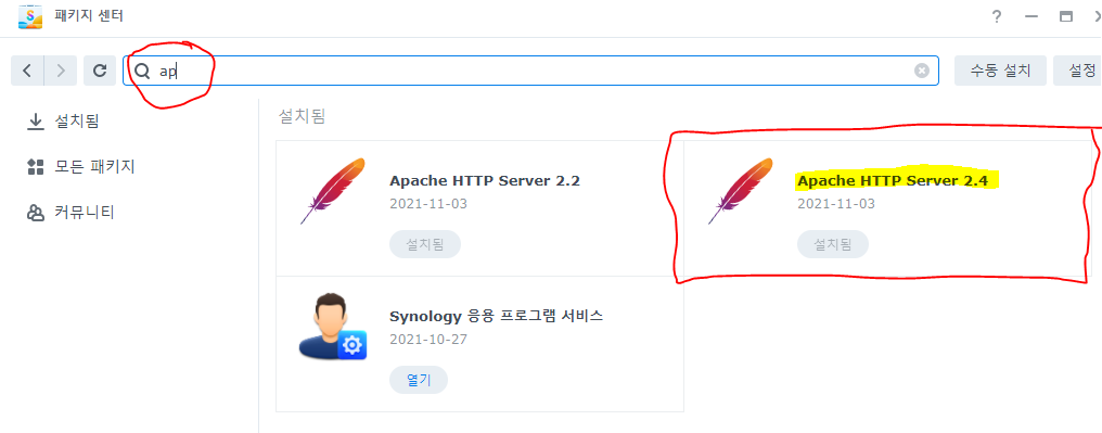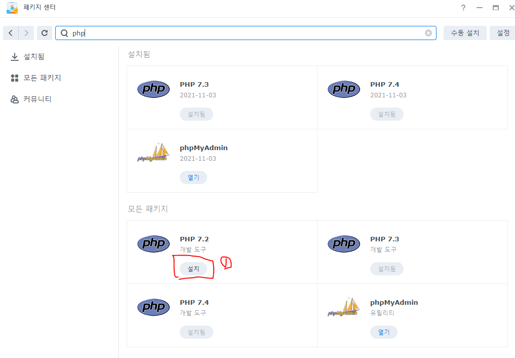 2) (시놀로지)패키지 설치 방법