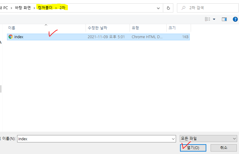 1. 테스트용 .html 파일 만들기 (2개)