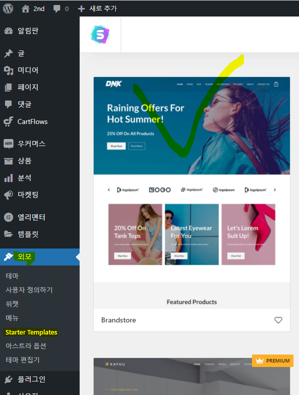 외모 > Starter Templates > Brandstrore 클릭