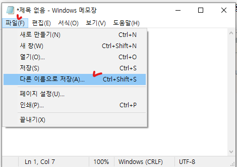 파일 > 다른 이름으로 저장 클릭하시면