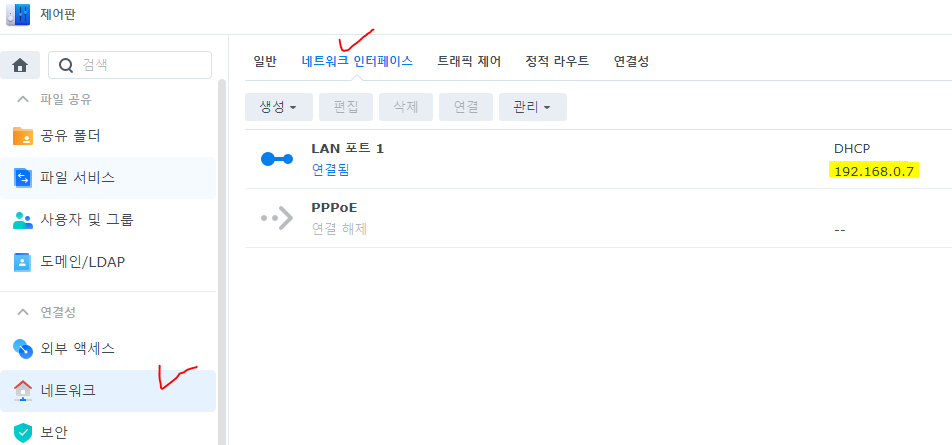 3. 시놀로지와 공유기 설정 (7.0기준)