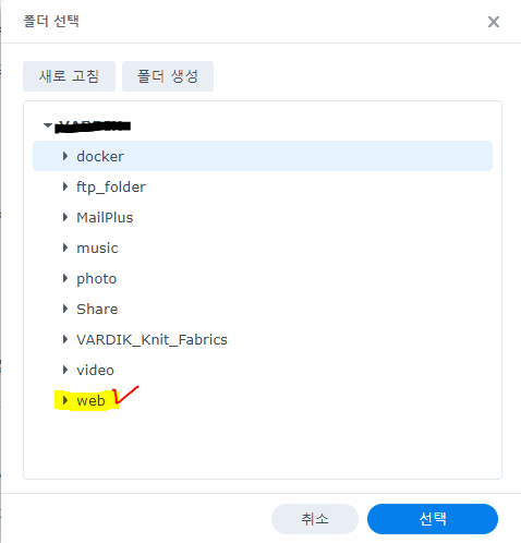 4) (시놀로지)폴더 생성