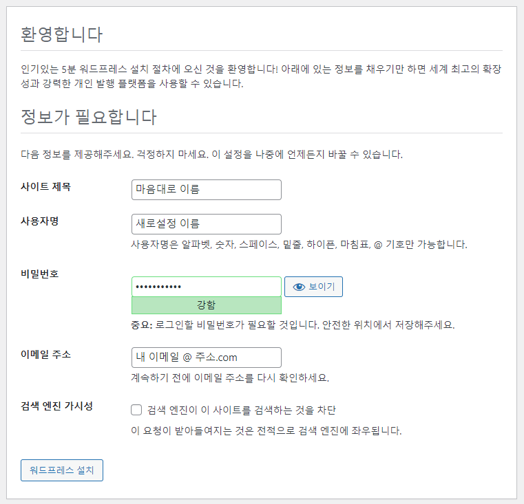 (3) 워드프레스 설치 시작