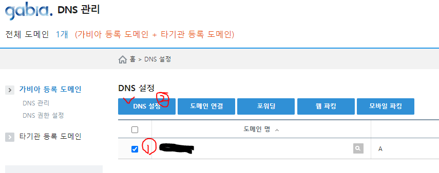 2) 가비아 도메인 설정