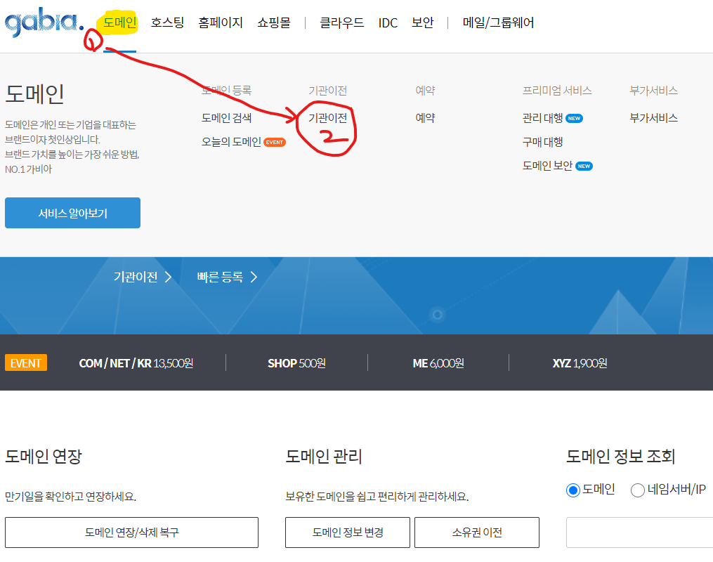많은 검색을 했는데, 도메인 관련한 글들이 가비아를 대상으로 진행하는 글들이 많습니다.