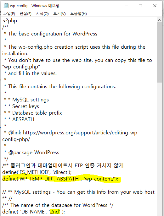 검색을 해보니 wp-config.php 파일에 아래 내용을 삽입 하라는군요. 2nd의 wp-config.php를 수정해보겠습니다.