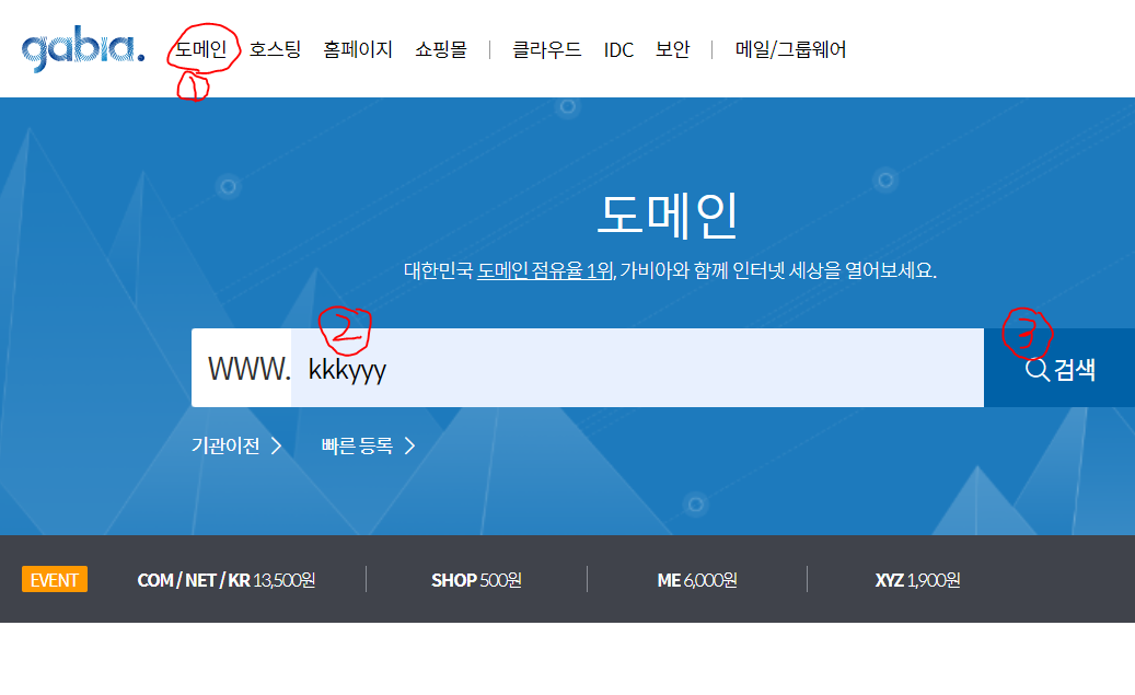 2. 가비아 도메인