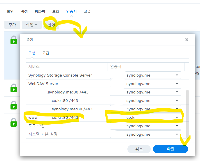그래서 시놀로지로 외부 도메인 연결하고,