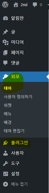 테마, 플러그인의 큰 범주로 나눌수 있습니다.