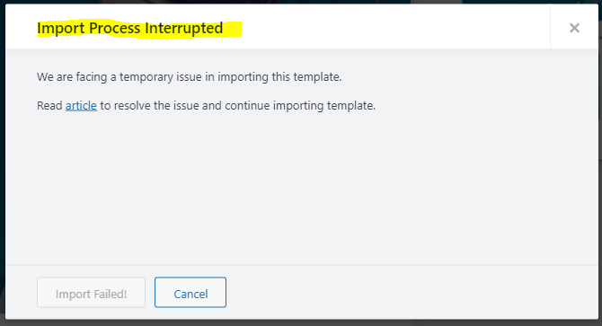 Starter Templates Import Failed - Import Process Interrupted