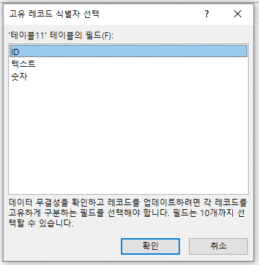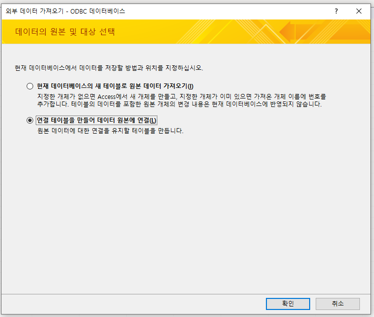 연결 테이블을 만들어 데이터 원본에 연결(L) 선택하시고 확인